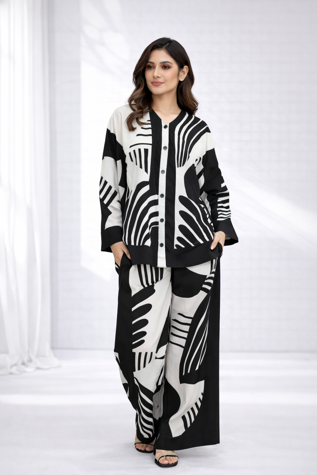Modern, bold, and effortlessly chic, this black and ivory co-ord set is made for women